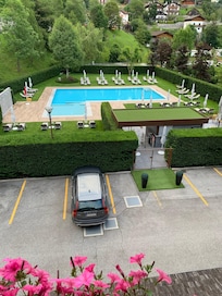 Het seizoensgebonden zwembad is geopend van mei tot september.