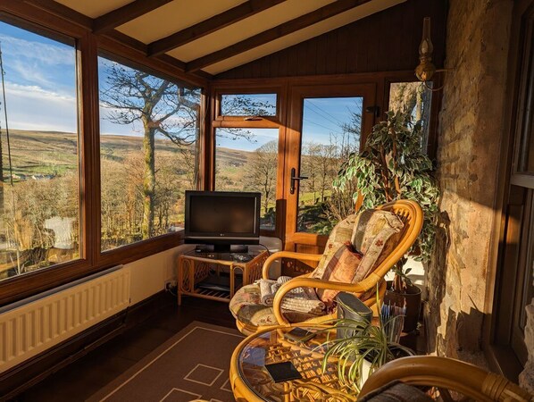 The living areas include a kitchen housing an electric oven and hob, microwave, fridge, freezer, washing machine, tumble dryer, dishwasher, a sun room and a sitting room and dining area - freeview TV with DVDs. There is a double bedroom serviced by a bathroom. To the outside there is a lawned garden with furniture and barbecue and off-road parking for one cars. One well-behaved pet is welcome however smoking is not allowed. WiFi, fuel, power, bed linen and towels are included in the rent. Within 3.8 miles there is a shop and within 3.9 miles there is a pub. Keepers is a splendid escape in Cumbria, whatever time of year. Please note, the property is built into a slope with entrances on first and ground floor.