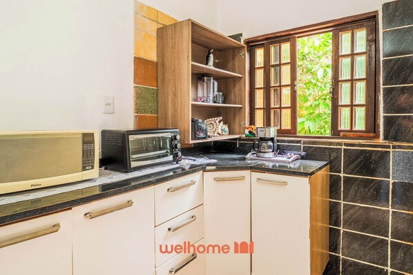 A casa acomoda até 4 pessoas em 2 quartos: um com cama de casal e outro com cama de solteiro e colchão de chão. O espaço interno conta com ar condicionado, TV, TV por cabo, internet sem fios, artigos básicos e cozinha equipada com fogão, frigorífico, micro-ondas e utensílios de cozinha. O banheiro dispõe de água quente.