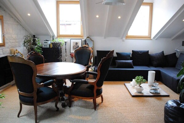 Triplex in the quiet old town of Annecy. Haven of peace overlooking an inner courtyard. An exceptional location to enjoy the advantages of Annecy without a car: your shopping, go to the restaurant, have a spritz on the terrace, visit the old town! The station is also within walking distance.
