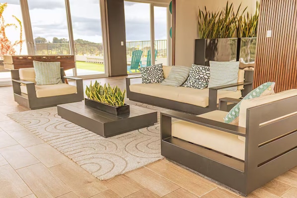 Acceso para huéspedes Los huéspedes tienen acceso completo al apartamento y a todas las áreas comunes: Salón de juegos con ping pong y futillo. Gimnasio. Área de churrasco. Parque infantil. Cancha deportiva. El condominio cuenta con seguridad 24/7 y parqueo privado para una estancia cómoda y segura.