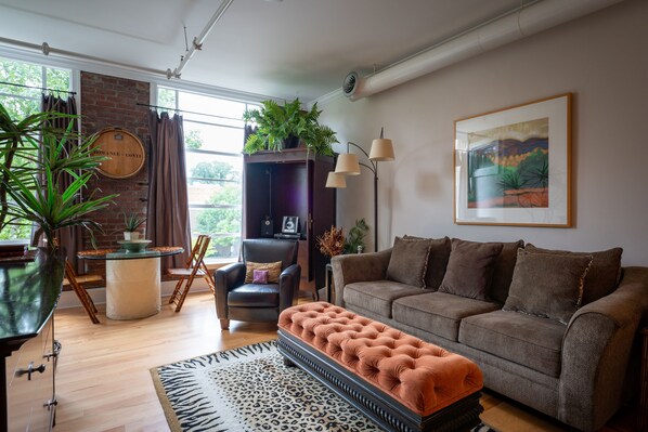 Kom en verblijf in deze zeer bijzondere loft, gelegen in het historische centrum van Asheville, een romantische en unieke stad, omringd door de schoonheid van de bergen van West-Noord-Carolina.
