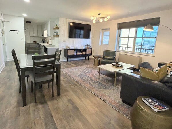 Enjoy a stylish stay in the heart of Downtown Atlanta! This modern high-rise condo is within walking distance of the World of Coca-Cola, Georgia Aquarium, Mercedes-Benz Stadium, and State Farm Arena. Relax in comfort with a 70” Smart TV in the living room and a 50” TV in the bedroom, both with free cable and high-speed internet. Located on the 19th floor, it offers stunning city views, antibacterial floors, an air purifier, and new A/C units for a fresh, relaxing atmosphere. Please note: there’s no on-site parking, but several nearby garages and open lots are available just steps away.