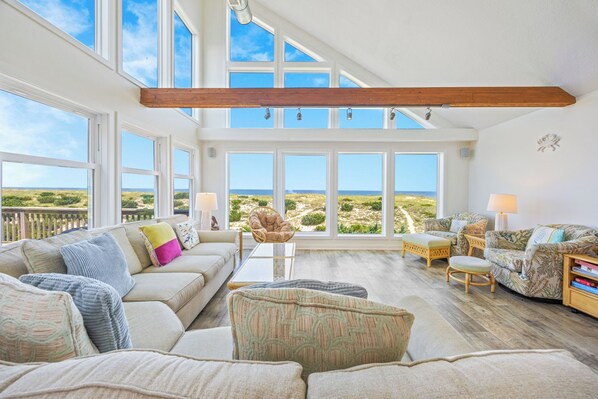 Loved the location, it felt quiet and private, and you can see the ocean and the sound from the top floor. Enjoyed the hot tub, the decks on both sides of the house, and the floor to ceiling windows to take in the views. Two things to keep in mind are there are lots of steps to get to the front door and even though you are oceanfront, it is quite a walk across dunes to get to the beach.