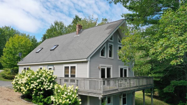 NIEUW LIJST IN SURRY, MAINE. Mooie vakantie woning met uitzicht op de oceaan op Patten Bay met een verhoogd uitzicht vanaf een groot dek. Geniet 's ochtends van koffie kijken naar zeehonden, adelaars en herten, samen met andere wonderen van de natuur op 4 privé, beboste hectare met 335' oceaanfront. Het huis biedt op de eerste verdieping een woonkamer met twee slaapkamers beneden, een met een queensize bed en een andere met twee eenpersoonsbedden. Ook op de eerste verdieping een centrale wasplaats met wasmachine / droger en een ligbad. Boven biedt een grote master suite met een kingsize bed met ligbad en zithoek. Open concept wonen met veel licht. Volledig uitgeruste keuken met eetbar inclusief vaatwasser en magnetron en eetkamer voor 8 personen. Alle beddengoed / handdoeken, standaard voorraadartikelen en startpapierproducten worden geleverd. En natuurlijk internet met wifi.