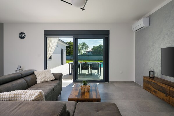 Modern, new build villa with private pool and large yard.