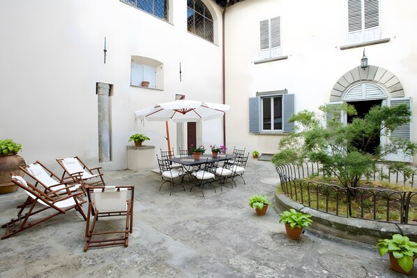 Buiten wacht een tuin en een privézwembad in het park van de villa. Het zwembad is 6x12 m en 140 cm diep. Zwembadhanddoeken zijn aanwezig.