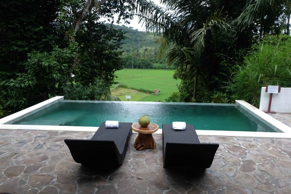 Villa met een buitenzwembad en een bubbelbad in Batu Layar