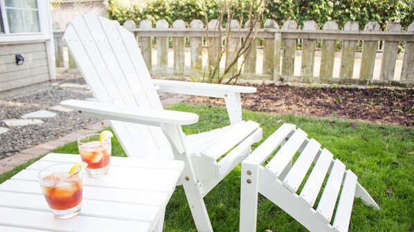 Kook maaltijden in uw eigen kitchenette met granieten aanrecht, elektrische kookplaat, broodroosteroven, magnetron, koelkast met vriezer, koffiezetapparaat en versgemalen lokale koffie, waterkoker en thee-assortiment. Potten, pannen, kookgerei, borden en glazen zijn allemaal inbegrepen. Ontspan in uw eigen, omheinde voortuin. Kom tot rust in uw hogedrukdouche met verstelbare douchekop voor alle hoogtes.