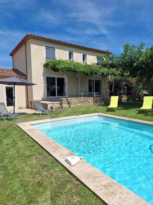 Elke badkamer is voorzien van een bad of douche. In deze villa in Beaumes-de-Venise is wifi gratis.