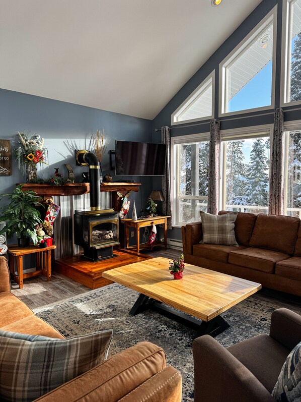Ons skichalet heeft alles wat een gezin nodig heeft om te genieten van het champagnepoeder dat Big White te bieden heeft. Prive-bubbelbad op het dek. Het heeft 4 aparte slaapkamers en is geschikt voor maximaal 8 personen. Geweldige locatie in Snow Pines landgoederen. Ski in / ski out. Een korte wandeling van 15 minuten naar het dorp langs verlichte wandelpaden .. Geweldig uitzicht vanaf de vloer tot het plafond ramen. Volledig ingerichte keuken geweldig voor entertainment. Gezellige propaan open haard om te ontspannen na een dag op de hellingen.