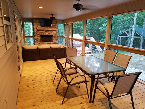 We had a wonderful time sitting on the screened porch, roasting marshmallows and giggling in the bunk beds (the kids). The location is very remote, but we were informed ahead of time and brought all the food and drink we needed for the weekend. The kitchen is well stocked with flatware, spices, etc. The nicest touch was a big bag of ice that was provided for us to use for packing up and taking extra food home! The house was very clean with very nice décor and bedding. The adults beds were amazingly comfortable (the best I've had in any VBRO place!) A few tiny things would make this place complete - hair dryers, a few nice couch throw blankets, more bath towels (I generally use two (one for head and one for body), wasp bug stray (for the 2 that came into the screened porch, and kitchen counter cleaner). They provided TP, hand soap and plenty of paper towels which was very nice to have. All in all, we loved the place and would rent again. The owners are very responsive.