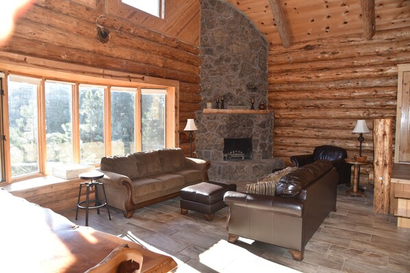Handgeschreven blokhut, ambachtelijke kwaliteit met veel karakter. Grenst aan LaPine State park met mijl van paden om te wandelen en fietsen. Gemakkelijke toegang tot Deschutes en Fall Rivers voor kajakken, raften en vissen. Groot dek kijkt uit over de rivier de Deschutes. Open plattegrond op hoofdniveau met tegelvloeren, keuken met granieten werkbladen en eethoek. Aangepaste jeneverbessentafel in het eetgedeelte biedt plaats aan 10 of meer. Begane grond slaapkamer met queensize bed. Vol bad. Trap naar slaapkamer op de vliering met queensize bed, ligbad en een apart slaapgedeelte met een volledige (tweepersoonsbed) futon met traagschuimmatras. Afgewerkte daglichtkelder heeft houtkachel, entertainmentruimte met bar, tweede grote koelkast, magnetron, 50 "tv en dvd-speler met dvd-bibliotheek (geen tv-ontvangst), semi-privé slaapgedeelte met queensize bed en 2 volledige (dubbele- bed) futons met traagschuimmatrassen. Wasmachine en droger. Prachtig uitzicht op de rivier en de natuur in een rustige landelijke omgeving voor diegenen die houden van ruimte om te ademen. We zijn ten zuiden van Sunriver en ten noorden van LaPine, met gemakkelijke toegang tot Hwy 97, en nabijgelegen meren en recreatiegebieden. Dit is casual comfort op zijn best. Huisdieren of hulpdieren zijn in geen geval toegestaan in deze privéwoning vanwege allergieën van onze familieleden. Niet roken binnenshuis. Momenteel is er geen wifi.