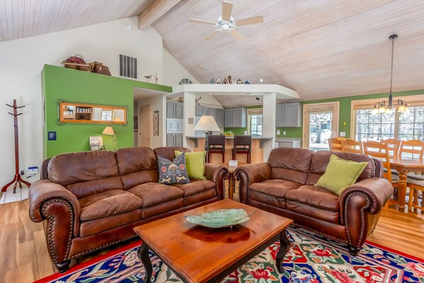 Welcome to your ideal vacation getaway in Sunriver, where comfort, space, and adventure come together seamlessly. This beautifully designed home features vaulted ceilings and an open-concept living, dining, and kitchen area, making it perfect for family gatherings and creating cherished memories. With three spacious bedrooms and two full bathrooms, there’s plenty of room for everyone to relax and unwind.