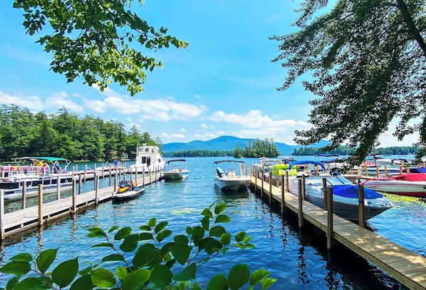 Dock space is available if you rent a boat from Chic’s Marina. Please contact Chic’s Marina to check availability. There are public beaches very close in both directions, and the town of Bolton is only about a mile away from shops, restaurants, and events.