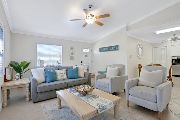 Revel in the comfort of this colorful two-bedroom, one-bathroom home in the serene neighborhood of Bonita Springs, FL. The home promises an entertaining, family-friendly retreat close to the best restaurants, shops, attractions, landmarks, and of course, sun-soaked beaches.