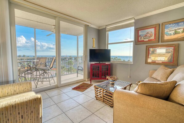 Inside, the unit is clean, comfortable, and well maintained. While not fully remodeled, the interior has a pleasant and welcoming feel designed for easy vacation living. The condo features a king bed, a fully equipped kitchen, fast Wi-Fi, and a TV with cable and streaming options. Fresh linens, bath towels, and beach towels are provided for your stay.