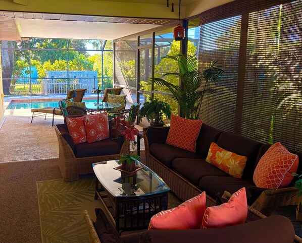 Geniet van de ontspannen comfort van deze private tropische retraite, omringd door exotische palmbomen, mango en citrusbomen. Perfect gelegen in het rustige, vriendelijke wijk Bonita Shores. Wandelen, fietsen of rijden naar mooie blote voeten en Bonita stranden, met een maagdelijk wit zand aan de Golf van Mexico op minder dan een mijl afstand; of ontspannen bij uw eigen prive zwembad.
