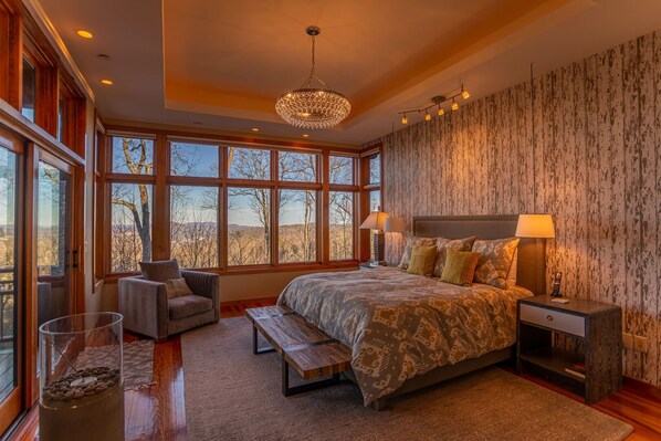 De hoofdslaapkamer is gewoon prachtig en beschikt over een muur van ramen, een eigen terras met een buitendouche, een Kohler Infinity-bad en een inloopdouche voor hem en haar met een apart stoombad en grote kasten. Boven zijn nog 4 slaapkamers - twee met kingsize bedden, een met een queensize bed en een stapelbed voor kinderen met 3 aparte bedden en 3 aparte bedden. Elk van deze slaapkamers (met uitzondering van het stapelbed voor kinderen) heeft een complete badkamer.