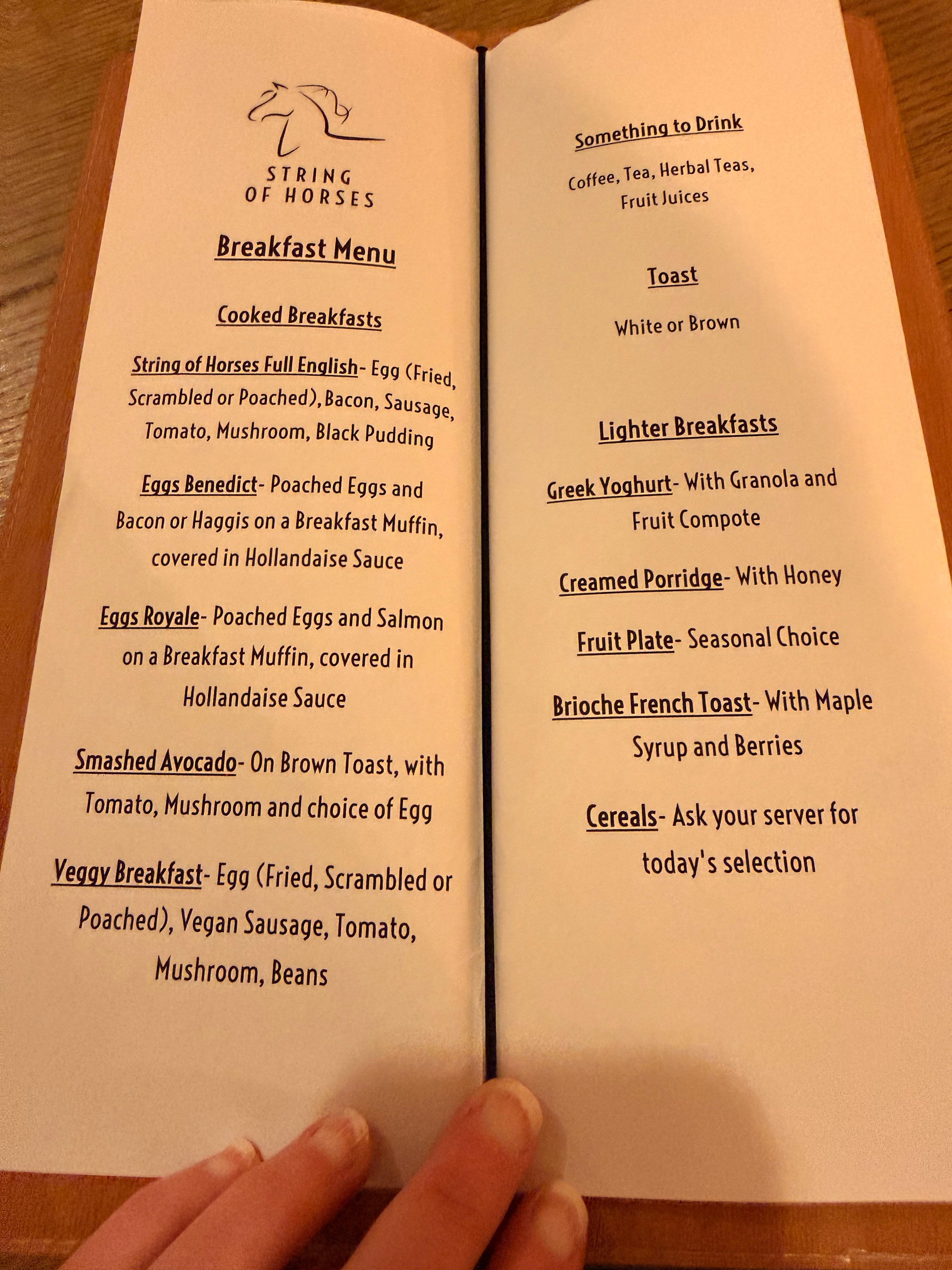 Really lovely. This was exactly what we were looking for as we traveled from London to Edinburgh by car. We wanted a quiet, homey feeling stay in a real country inn. String of Horses was exactly that. Dinner, the rooms, breakfast, the staff were all excellent! Cheers!