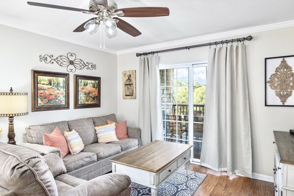 Volledig gerenoveerd en nieuw ingericht en gedecoreerd in eind 2015, ons appartement biedt alle gemakken van thuis na een drukke dag in Silver Dollar City, Table Rock Lake, sightseeing rond Branson, liveshows, golf, winkelen of dineren. Onze eenheid bevindt zich op de begane grond, ongeveer 15 trappen naar beneden vanaf de parkeerplaats. Als u op de begane grond verblijft, heeft u gemakkelijk toegang tot de tuin, de speeltuin, het zwembad, de tennisbaan en de andere voorzieningen van het resort, vlak bij het achterste 20ft terras.