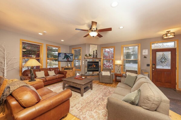 Dit luxe huis is geschikt voor maximaal 12 volwassenen of 15 in totaal met kinderen. Verzamelen rond de open haard met familie en vrienden of stap weg om tv te kijken of een bordspel te spelen in de familiekamer op de begane grond. Geniet van het adembenemende uitzicht op de bergen vanaf de achterporch. Hoe je het ook bekijkt, deze River Ridge Rentals-woning is de perfecte plek voor diegenen die dicht bij alles willen zijn wat Breckenridge te bieden heeft!