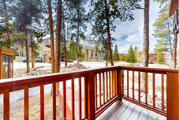 Welcome to your Colorado mountain retreat! Whether you are visiting Breckenridge for a weekend getaway or for an extended weeks-long stay, this first-floor condo is your perfect choice. This retreat boasts the perfect location within an easy and short walk of downtown and the Snowflake ski lift. Enjoy an open and spacious floor plan in this attractive mountain-themed, thoroughly updated condo. This corner retreat features large picture windows and a stunning gas fireplace outlined with natural Colorado stone. The modern custom-designed kitchen and bathrooms include exquisite granite countertops. Prepare delicious culinary masterpieces in the kitchen and then retreat to the inviting living area for an entertaining evening watching favorite shows and movies on the TV with a DVD player. This bright and sunny condo is an excellent choice offering a fantastic main suite with a private bath, a second bedroom with a comfy bed, and a sleeper sofa in the living room.