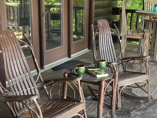 Dit logboekhuis met drie verdiepingen kijkt uit op het Great Smoky Mountain National Park in Bryson City, NC. De cabine biedt een adembenemend uitzicht op de bergen op korte en lange afstand, een natuurpad naar de kreek en veel privacy in deze gated community. Deze blokhut is neergestreken op 2800 voet en heeft 840 vierkante voet overdekte portieken. De 12 voet veranda heeft 2 sets stoelen / rockers, hoge bar tafel en stoelen, zodat u kunt ontspannen op het dek met uw dierbaren en kijken naar de zon gluren over de bergen of kijken hoe het achter hen ondergaat.