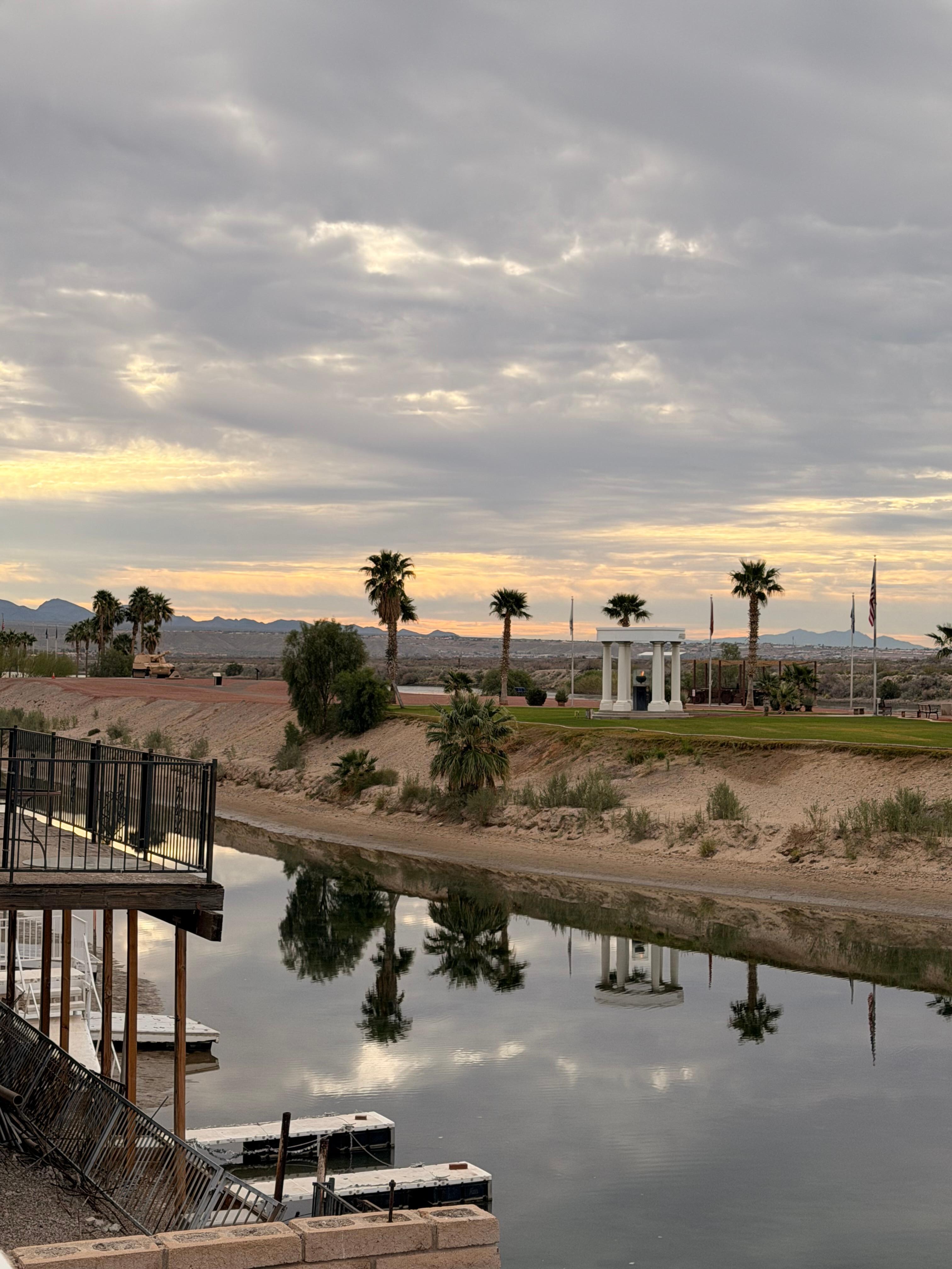 Stunning 3-bedroom, 2-bathroom, 2000 SF house on the Colorado River. Nestled on a serene river inlet, it's perfect for fishing, snorkeling, swimming, kayaking, and paddle boarding. The home boasts a Ruby Red kitchen and bathrooms with vibrant interior decor. Relax in the cozy living room featuring a large smart TV with access to Netflix and other services, plus every room includes a smart TV. Essentials like shampoo, conditioner, soap, and ample supplies are provided. The fully fenced, pet-friendly backyard has outdoor furniture, a table, and a new red BBQ grill. The spacious kitchen is fully stocked for all your cooking needs. Upstairs, the master bedroom features a king-size bed, a big walk-in closet, a private balcony, and an attached bath with a large tub and separate shower. The two main floor guest bedrooms, equipped with TVs, sleep additional guests comfortably with a queen and two twin beds. The property includes a large driveway for boat trailers, and a private dock, with a nearby boat ramp for easy water access. You'll appreciate the unobstructed views of the Colorado River and Arizona mountains, relax under the covered patio or soak in the 8-person jacuzzi. Enjoy peaceful mornings watching local wildlife, kayaking, fishing, or feeding ducks from the dock. Located near Veterans Memorial Park, the home is devoid of noise from the closed bar next door. Offering numerous activities and just a few miles from Laughlin Casinos, it's an ideal vacation spot for swimming, relaxing, and making lasting memories with family.