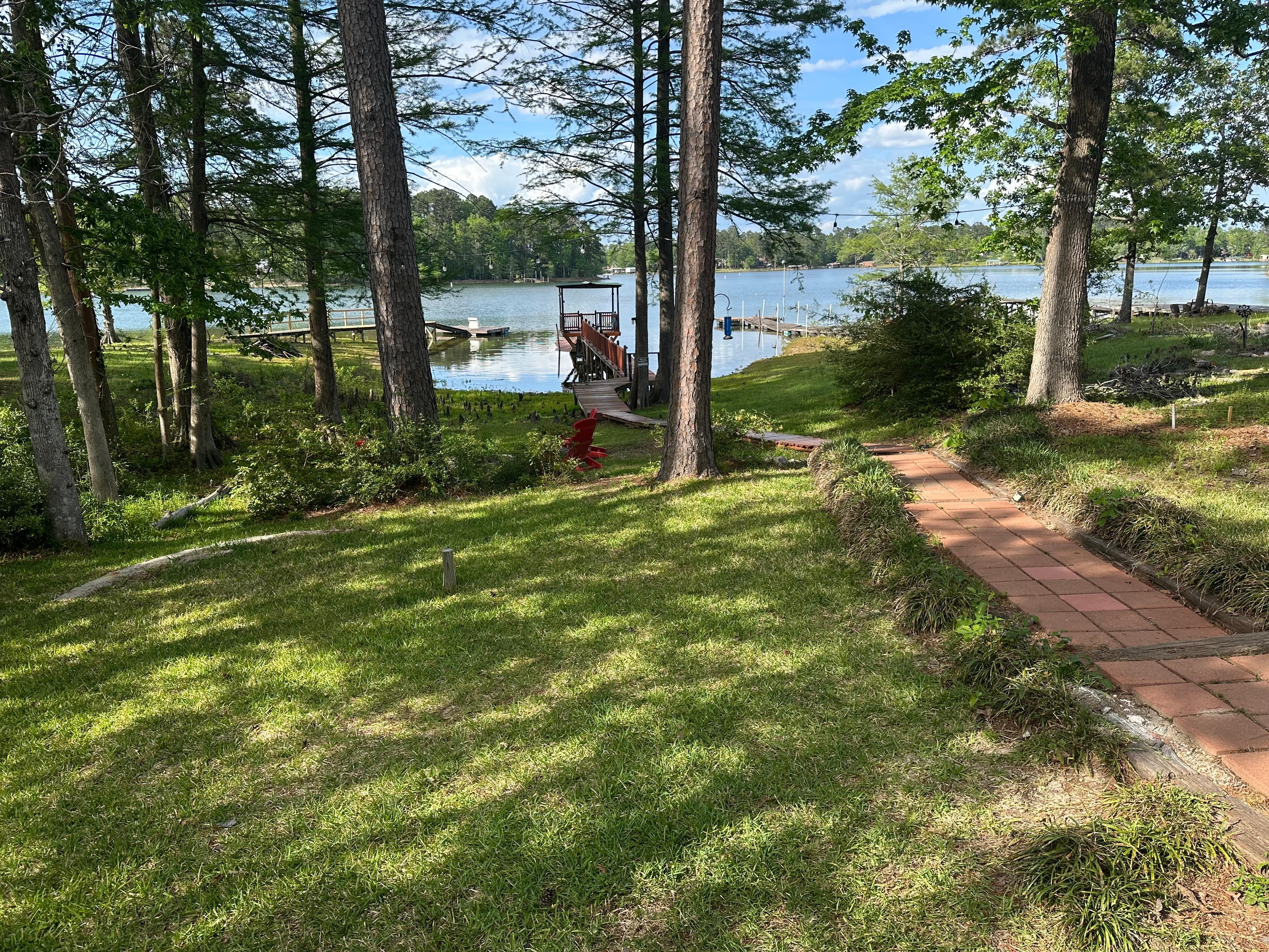 Cedar Cabin on Indian Creek in Toledo Village section 6 Fishers Point. Located in a quiet neighborhood on South Toledo Bend, Texas, this lakefront cedar cabin is the perfect place to get away from it all. You can relax on the covered porch, or on the open sundeck, and enjoy the panoramic views of the lake. Pets are welcome, with $75 pet fee. Large covered carport with electricity. Walkway to fishing dock with electricity and covered end, floating swim platform with ladder. Kayaks for guest use, bring your floatation devices! Back deck is 'fenced' with latched gates to prevent