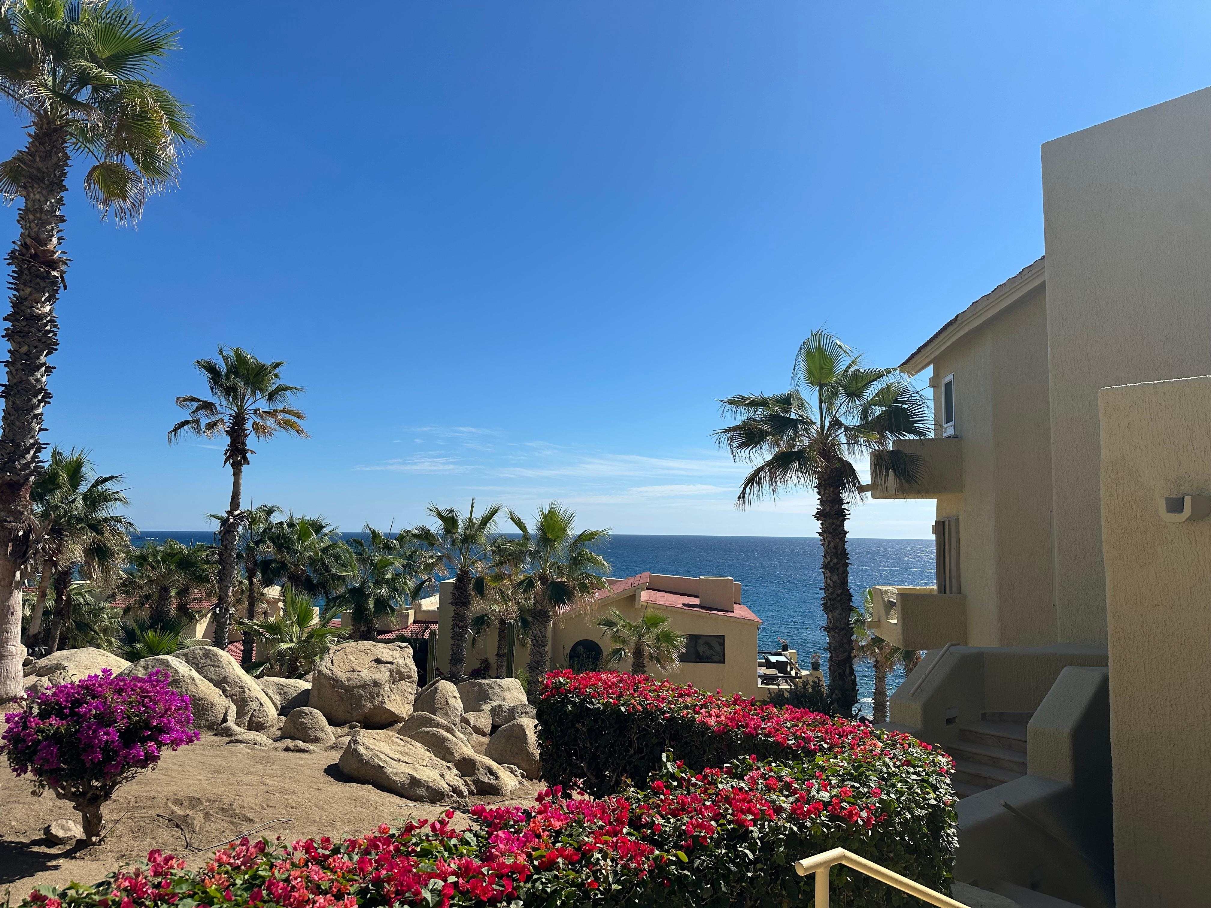 Dit onlangs gerenoveerde appartement met twee slaapkamers aan de oceaan ligt op de kliffen van Misiones en op slechts enkele minuten van het centrum van Cabo San Lucas. Het uitzicht op de oceaan is prachtig en van november tot april kunt u walvissen spotten op het dek, op de ligstoelen in de vroege ochtendzon of 's avonds op de sectionele bank bij zonsondergang. Een natte bar op het dek, een koelkastje en een roestvrijstalen barbecue zijn slechts enkele van de prachtige functies, en niet te vergeten de 75-inch smart-tv in de woonkamer met satelliet- en draadloos internet. De keuken is prachtig ontworpen met koperen spoelbakken, granieten aanrecht en roestvrijstalen apparaten. Voor uw gemak is de koelkast voorzien van een ijsmaker en gefilterd water.