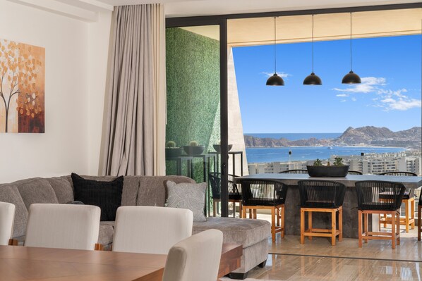 Welcome to your luxury vacation retreat in Cabo San Lucas! This three-bedroom penthouse offers unparalleled ocean and Arch views, setting the stage for an unforgettable stay. With its modern interior design, clean lines, and a thoughtfully planned layout, this penthouse provides the perfect blend of elegance, comfort, and style.