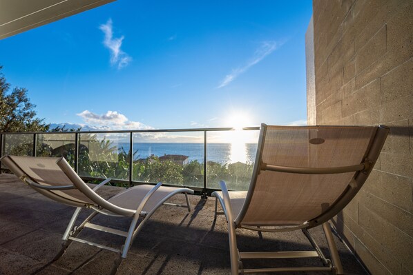 Recently built in contemporary style incorporating natural elements throughout it is a fusion of modern design and natural materials. The villa consists of vulcanic stones and rocks from the Azores, Cape Verde, Madeira and mainland, high quality wooden finishes and extensive glass areas offering plenty of light and sunshine inside. The villa has a sea facing patio, terrace, balconies as well as covered and uncovered garden areas with plenty of shade. There is an outside barbeque area with a large patio lit up for open-air dining as well as an outside shower to cool yourself during the hot days or remove the salt after a refreshing swim in the ocean. The ground floor consists of a lounge area with flat-screen TV and a high speed wireless internet access as well as a laptop friendly working desk. Next to the lounge is the open plan dining area connected with the kitchen. On the first floor there are 2 master bedrooms sleeping 4 in total with en suite bathrooms, one with a corner bath and the other with a walk-in shower. Each bedroom has it's own private balcony and a terrace with ocean and mountain views.