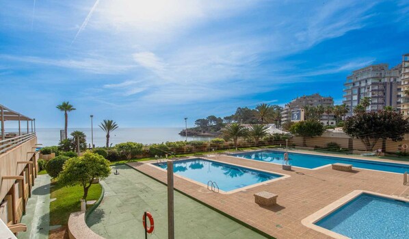 The Voramar building is a very well-kept building. It has an area with 3 swimming pools to relax and sunbathe. Through the passage that separates the stairs of the building and the pool area, there is direct access to the promenade, restaurants and bars, and the beach.