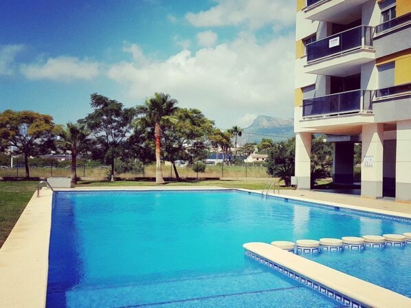 Moderne, mooi flatgebouw "Costa Calpe", van 14 verdiepingen. 3 km van het centrum van Calpe, in het district La Merced, zonnige ligging, 500 m van zee, 500 m van het strand. Voor medegebruik: tuin met bomen, ligweide, openluchtzwembad hoekig (seizoensgebonden beschikbaarheid: 01.Jan. - 31.Dec.). Kinderzwembad, buitendouche. In het huis: lift. Parkeerplaats. Winkel, levensmiddelenwinkel, supermarkt 240 m, restaurant, bar 140 m, bushalte 240 m, zandstrand "Playa De La Fosa" 500 m. Attracties in de buurt: Aqualandia, Mundomar, Terre Mítica, Terra Natura, Fuentes del Algar, Guadalest Castle.