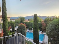 Gezinsvriendelijk appartement aan het strand met een buitenzwembad