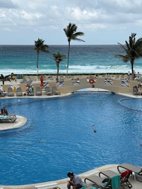 Familiepret op het strand, met 3 buitenzwembaden, dicht bij Iberostar Cancun-golfbaan