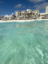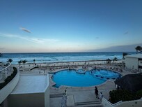 Biggest con was they did not have fruity water upon arrival, but they did offer to serve you a drink on arrival downfall though there was no fruity water anywhere on the premises. I like going to Mexico for fruity water. The property is large. There are three pools. The adult pool has a lot of drunk people at times but that’s OK. It’s still nice. The kid pool have family pool gets the most hours of sun in April. Just the way the hotel is situated. I’m not sure if it’s a timeshare that they tried to sell us sounded like a timeshare and I don’t think they gave everyone the same time share deal that was a little bit of a downfall, but can’t blame them for trying. Aquasize at noon was delayed one day, which was irritating, but it’s OK because the following day the aqua size guy was amazing. Food is hit or miss à la carts were pretty decent, but it was difficult to book because you had to wait in line at 8 AM and the line didn’t open till nine and food was pretty much the same every day at the buffet, they are fixing the elevator in the one tower but overall that wasn’t too bad. We didn’t do too many of the entertainment, but Michael Jackson was amazing and so was the tenors and then swimming off the beach is pretty sweet deal as long as the waves aren’t crashing down on you too hard note there are fish in that water, but it’s sporadic to see them and occasionally they fly out of the water and try to stab you. Good shopping nearby. Cheap bus is accessible and easy to get to.