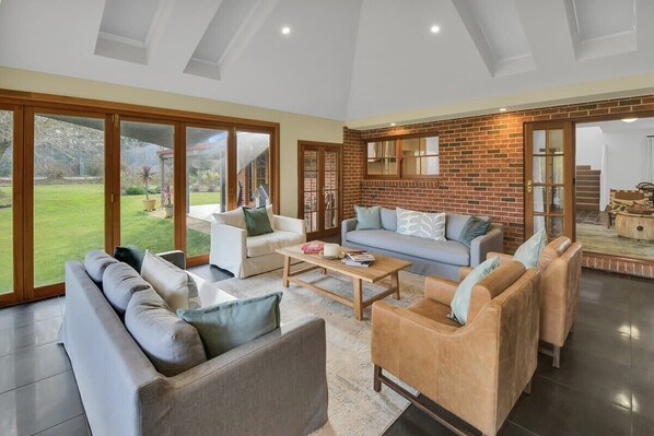 We booked Snowline for my mother's 95th birthday celebrations with our closest family members:- 7 adults, 3 teenagers and 3 kids under 10. The house is so well equipped and the gardens are glorious. The kids even swam in the very cold Orange winter swimming pool and warmed up in the spa afterwards. We enjoyed playing cricket on the lawns, toasting marshmallows in the firepit and sharing a meal in the wonderful indoor outdoor room. The grounds provided space for the kids to play out side during the day and indoors for pool/snooker and lego when it got dark. There are enough spaces for the kids and parents to get away from each other but still be safe and we all agreed it was an incredibly fun and relaxing weekend. 10/10 We are already planning a return visit.