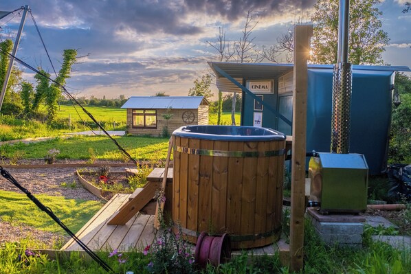 1920's Showman's Carriage with wagon, cinema, hot tub & stunning views by river!