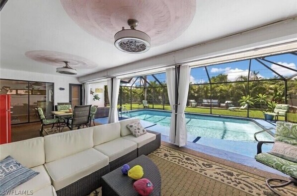 Heated pool home. Have fun with the whole family at this stylish place. Welcome to our home, Sunshine Awaits of Cape Coral, a relaxing tropical pool paradise. Here you will escape to a Florida tranquil oasis, with a beautiful heated pool, and lush tropical ambiance. This home is centrally located to shopping centers, restaurants, nightlife, parks, fishing/boating, SunSplash water park and SW Floridas greatest beaches including Ft Myers beach, Sanibel Island, Captiva Island, Cape Coral Beach, Bonita Beach, Naples and Marco Island. Englewood Beach, Venice Beach are also beautiful beaches within 1 hour drive, and Siesta Keys within 1 hour and 15 mins.