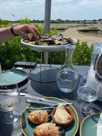 Very peaceful location but very close to all amenities. Quite basic but has absolutely everything you need. Very comfortable beds and a good shower. Excellent supermarket and plenty of restaurants within a 5 minute drive. Recommend L’Huitres for lunch on a nice day (all outside)- fresh oysters, lobster cooked to order. No salad or vegetables just excellent fresh fish and bread. Everywhere we went was spotlessly clean, no litter anywhere. Beaches are lovely and the sea clear and warm (we did have 2 weeks of perfect weather). Megaliths are worth visiting- take the open top bus tour, very interesting commentary in most languages. All in all a thoroughly enjoyable holiday.