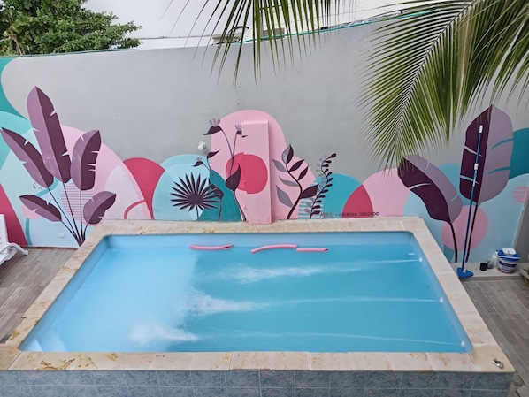 Ja, deze accommodatie heeft een buitenzwembad.