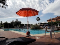 Het seizoensgebonden zwembad is geopend van juni tot september.