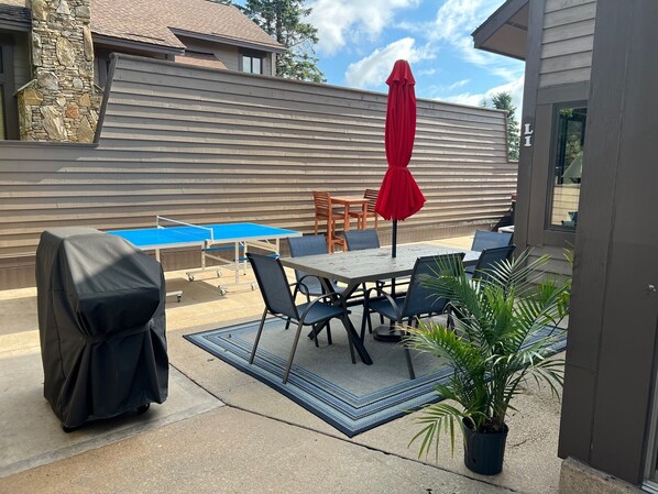 IN THE SUMMER, THIS TOWNHOUSE IS SECONDS FROM THE POOL/PLAYGROUND/TENNIS/BASKETBALL/PICKELBALL COURTS!! If you are familiar with the Sunridge community in The Villages at this fabulous resort, you'll know that being close to the pool/playground/tennis/basketball/pickelball courts is really convenient. Free of charge with your rental. We also have one of the largest patios in the community, with plenty of seating and feeling of serenity.....a great place to enjoy a cup of coffee, a glass if wine, or a good beer. Just want to relax? Enjoy the hot tub at the pool, or grab a plastic cup and enjoy the private hot tub on the patio! We also have a private ping pong table on the patio (Summer only!) - tons of fun for everyone! Want to go hiking or biking while you are visiting? There are plenty of trails - for families with small children, to expert mountain terrain, and everything in between. No need to leave your bikes outside - pull them right inside our garage for safe overnight storage.