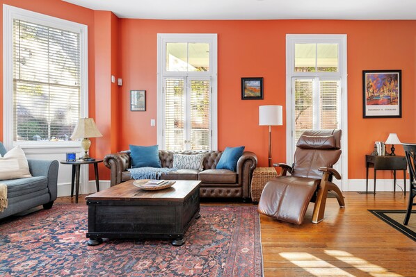 Dit is een klassiek huis in Charleston. Wanneer u naar deze accommodatie rijdt, is de kans groot dat u één ding zegt: "Wow". De locatie door Saint Philip en Morris straten is slechts een blok van de meest wenselijke restaurants en het nachtleven van King Street die de stad te bieden heeft. Je kunt naar alles lopen. Het huis beschikt over originele hardhouten vloeren, hoge plafonds op de eerste verdieping, recent bijgewerkte keuken en prachtige dubbele veranda's - echt een droom. De woonkamer en eetkamer is een open plattegrond en creëert een prachtige ruimte voor grote groepen om van elkaar te genieten. Er is ook een slaapbank in de woonkamer en een half bad op de eerste verdieping voor extra gasten. Op de tweede verdieping is de prachtige master suite met een kingsize bed en een grote spa zoals een eigen badkamer met een apart ligbad en douche. Het 2e complete bad bevindt zich in de gang op de 2e verdieping. Op de derde verdieping vindt u de 2e en 3e slaapkamers, elk met een queensize bed. Daarnaast biedt dit huis 2 parkeerplaatsen op straat en een wasmachine en droger voor gasten.