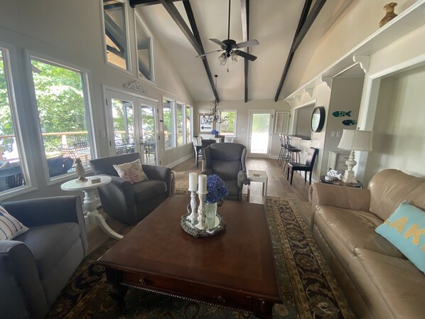 Freshly updated 2100 square foot cottage with breathtaking main channel views of Lake Norman. There are two covered deck spaces for dining, relaxing, and enjoying all the views that the lake has to offer. If you have a boat, bring your own and park it at the dock. If you need a rental, there are several places we recommend on the lake to rent one for the week. We also have outdoor seating on the dock to relax and unwind. The home comes with 2 kayaks, a canoe, a large floating mat, and several smaller floats for you to enjoy.