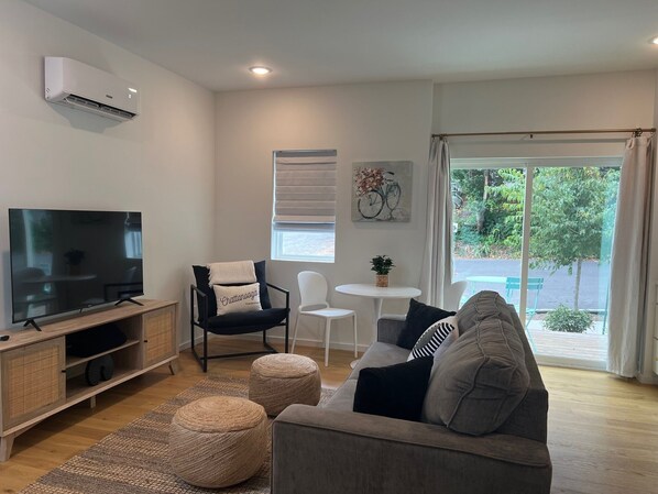 Unwind in the comfort of your own space, complete with free WiFi, a smart TV, and a convenient washer and dryer. Prepare delectable meals in the fully stocked kitchen, equipped with a stove, oven, refrigerator, and all the essentials. Savor your culinary creations at the dining table, or step outside and enjoy the fresh air on the outdoor patio.