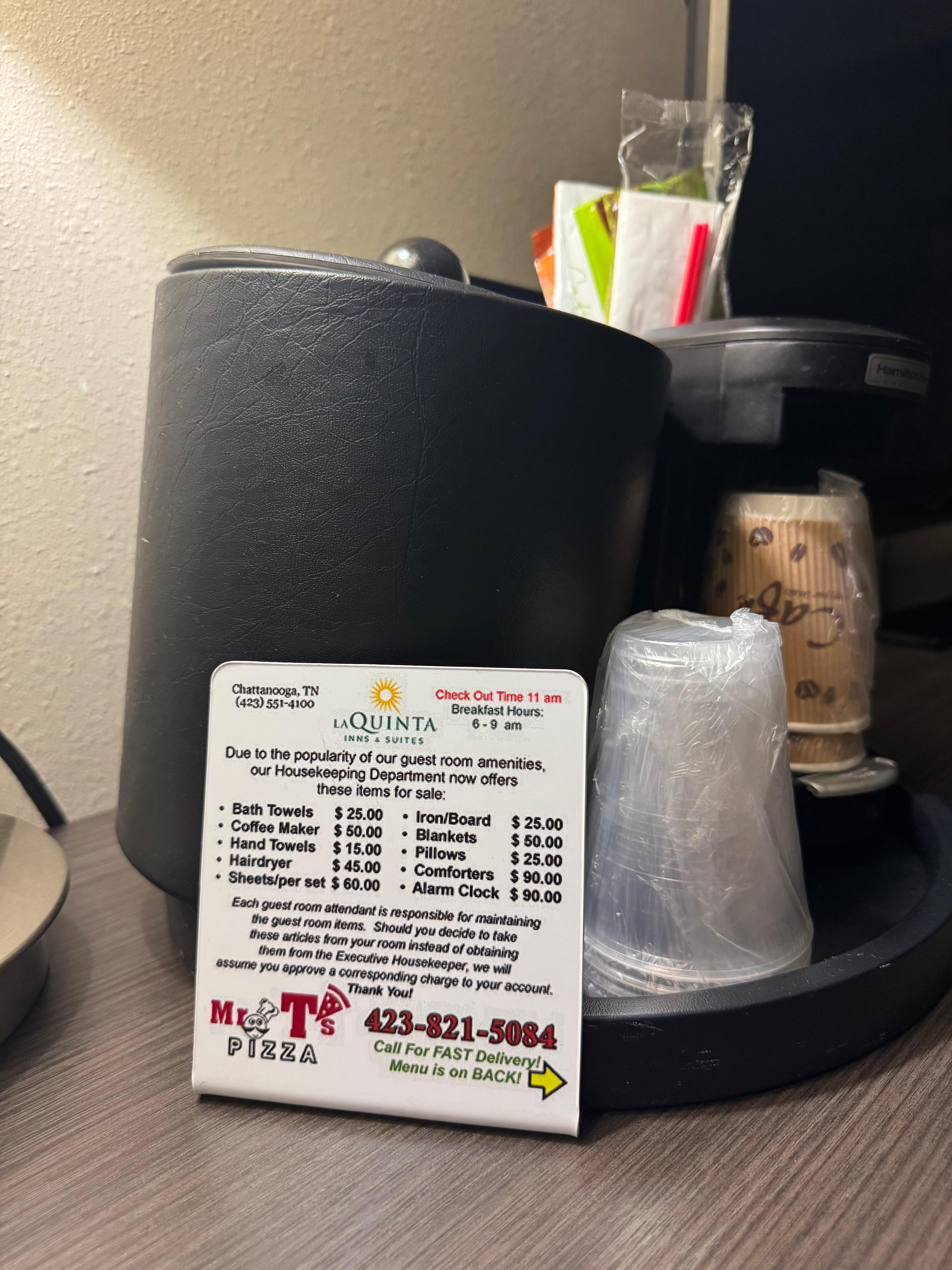 Vandaag, 14 mrt. 2026, kost een verblijf bij La Quinta Inn & Suites by Wyndham Chattanooga - Lookout Mtn van één nacht voor twee volwassenen op 23 mrt. 2026 min. € 103, inclusief belastingen en toeslagen. Deze prijs is gebaseerd op de laagste gevonden prijs per nacht in de afgelopen 24 uur voor verblijven in de komende 30 dagen. Prijzen kunnen wijzigen. Kies je datums voor meer accurate prijzen.