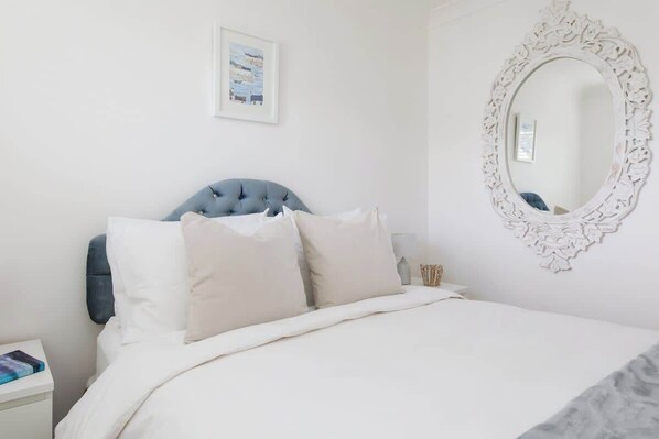 De twee slaapkamers op de eerste verdieping zijn groot en kunnen plaats bieden aan de reiswiegjes of onderschuifbedden als u ze nodig hebt voor extra gasten. Extra gasten kosten £ 25 per persoon per nacht.